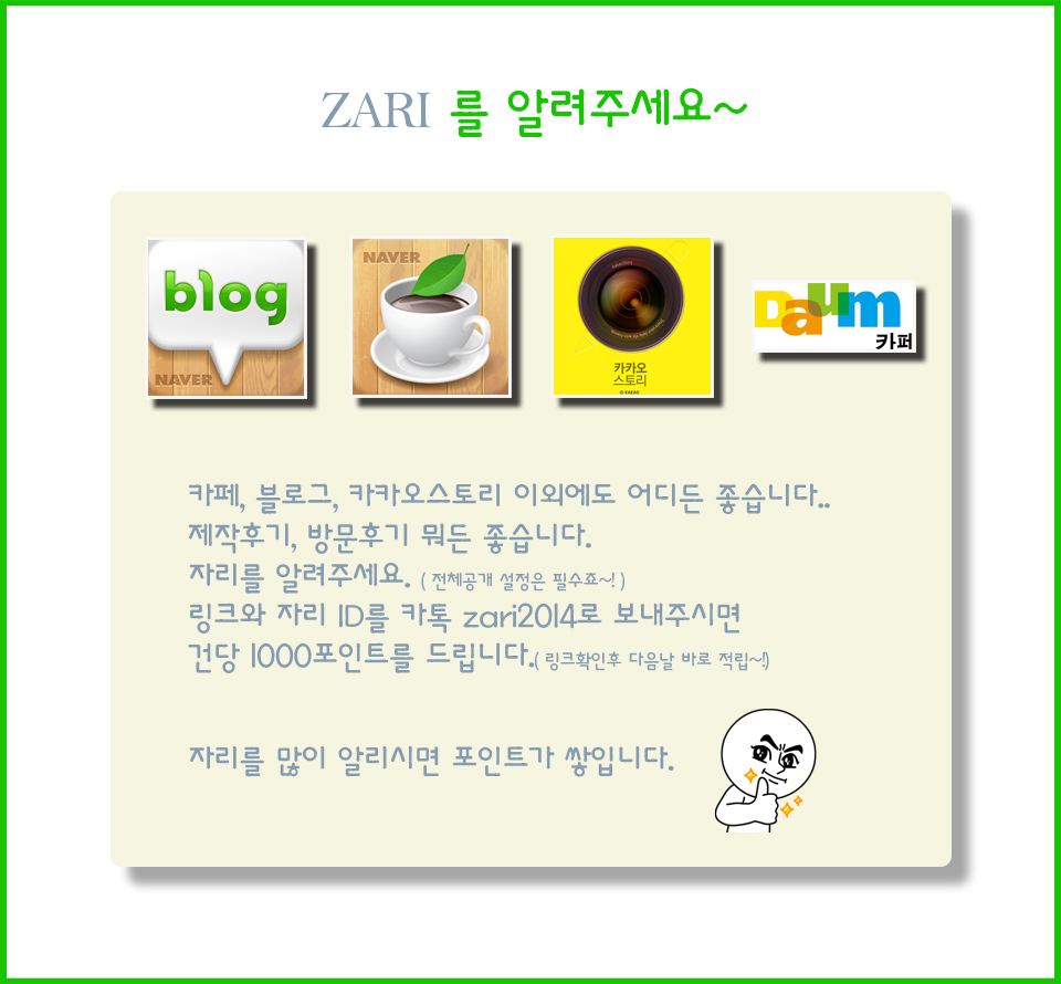 ZARI를 홍보해주세요. 페이지 정보 작성자 관리자 작성일14-03-27 17:48 조회9,149회 댓글0건 이전글 다음글 목록 본문 후기를 쓸수록 포인트가 쌓입니다.횟수 제한 없습니다~! 댓글목록 등록된 댓글이 없습니다. 이전글 다음글 목록